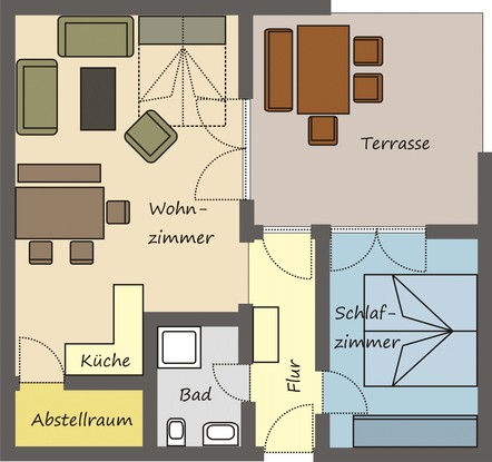 Weiterhin hat die Wohnung eine Terrasse, die Platz für Gäste und Freunde bietet und auf der Sie die Abendsonne genießen können.